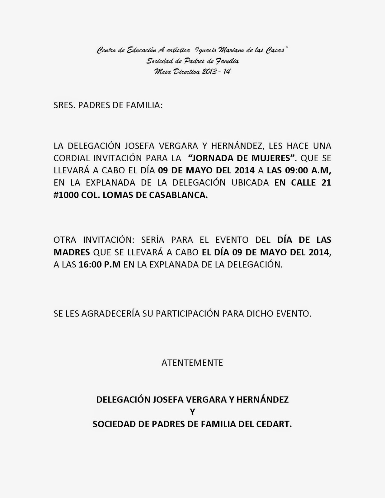 Invitacion Para Jornada De Padres